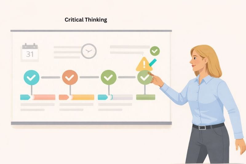 Managers can help employees develop critical thinking skills with questions like what, why, when, who, and why. They can also encourage learning beyond daily tasks, so that employees get a different perspective on the industry or their job function.