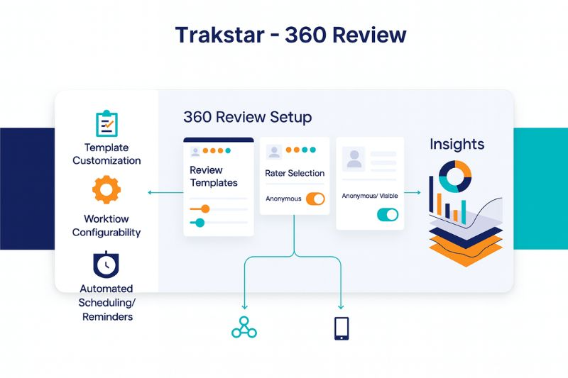 Core Focus: Trakstar is known for its industry-leading 360-degree capabilities, configurable templates, anonymity controls, and automated review workflows. It further supports peer feedback and aligns with employee engagement goals.