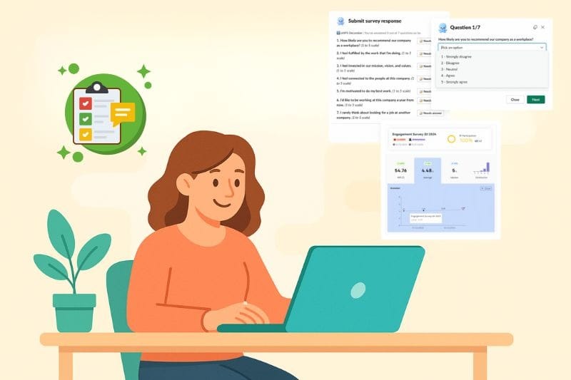 An app like Pulsy Survey makes it easy to conduct snap surveys in Slack. This way, you’ll track eNPS and employee engagement from day one. New hires feel heard, and you don’t have to be a mind reader to know whether you’ve hit the mark with your onboarding process.