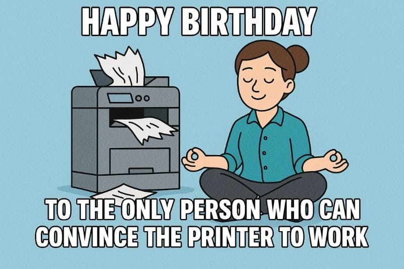 What’s the perfect birthday gift for a person who understands ‘printer’? Surprise your coworker with this meme that says, ‘I’ve seen what you do for us’.