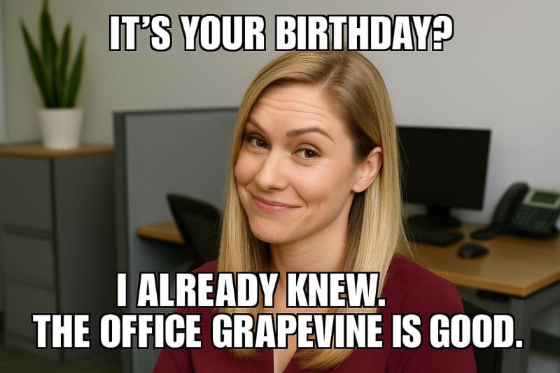 Memes have this lovely habit of sliding right past workplace awkwardness and landing on the sweet spot where humor brings out the best in people. They work well as birthday messages because they are easy to find or create, and they’re low-pressure.