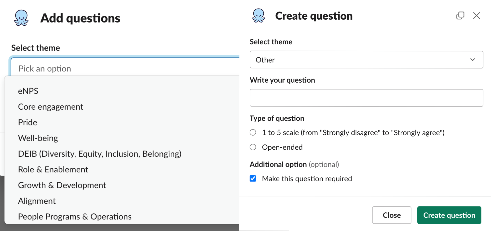 We recommend to install Pulsy Survey app for Slack. This app provides a very useful question bank with many thematics. There is a way to measure eNPS and track employee engagement and also there are smart reminders to make sure employees answer the surveys.