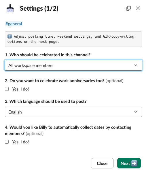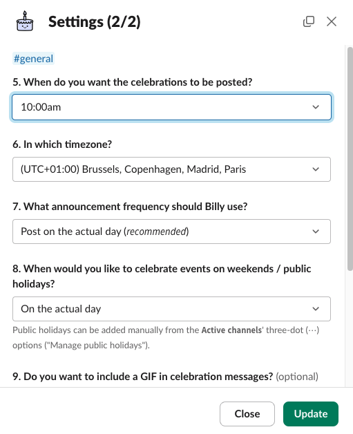 - You can choose to celebrate also work anniversaries or keep it birthdays only.