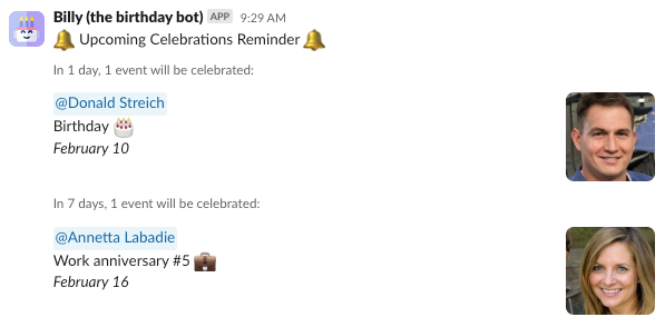 Slack is where employees spend a lot of time working and interacting. In the end it becomes their work environment. That's why this is where you'll want to celebrate important milestones, birthdays and work anniversaries.