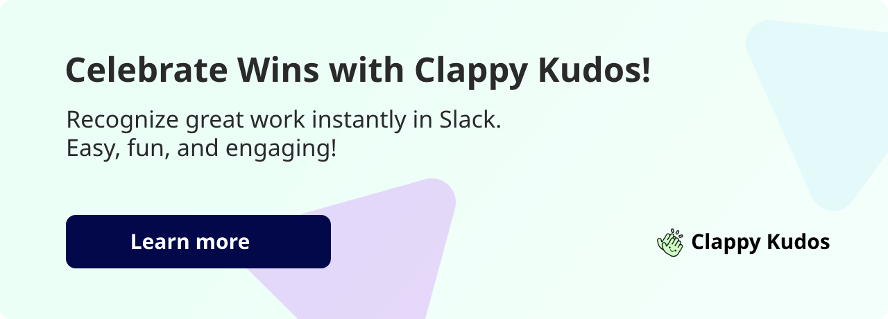 ‘Giving kudos’ in the workplace is a form of recognition aimed at strengthening connection, acknowledging great work, and keeping employees engaged. Kudos can be written as a note, expressed verbally, or sent from a kudos platform (like Clappy Kudos in Slack). The choice is yours, but with such a small thing making such a big impact - why not start this practice now?