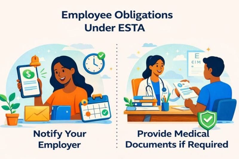 Under ESTA, the employee must comply with certain administrative obligations to prevent the misuse and mishandling of sick time off.