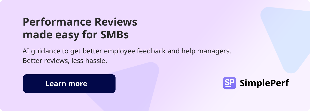 💡 Great 1:1s drive growth, trust, and productivity. Let Simpleperf handle all the admin so you can focus on coaching for success. With integrated AI prompts that make your feedback more valuable. Create your first review now.