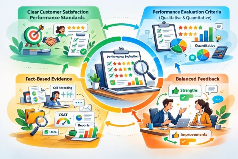Master customer service performance evaluations with our step-by-step guide. Set measurable KPIs, use 360-degree feedback, and drive exceptional service quality.
