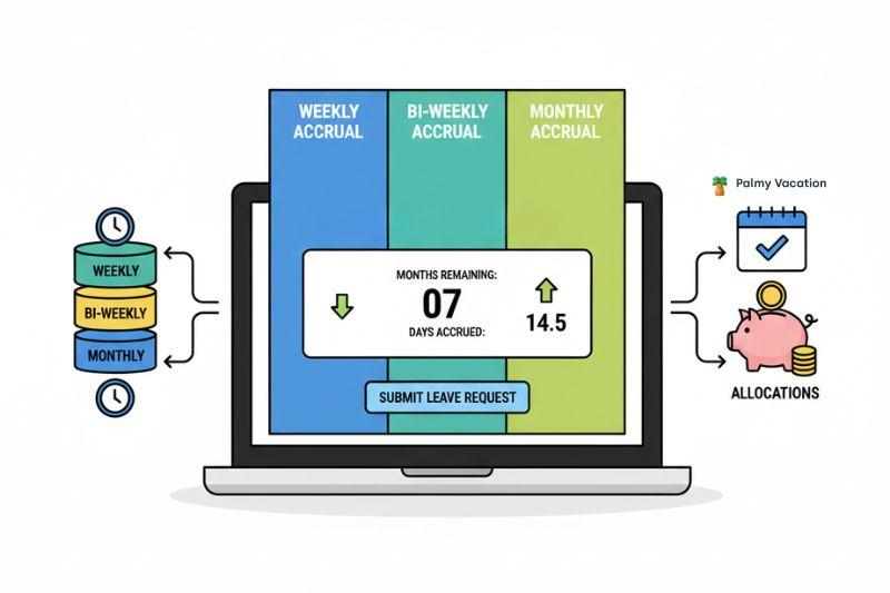 - Biweekly accrual: 20 ÷ 26 = 0.77 days per paycheck
