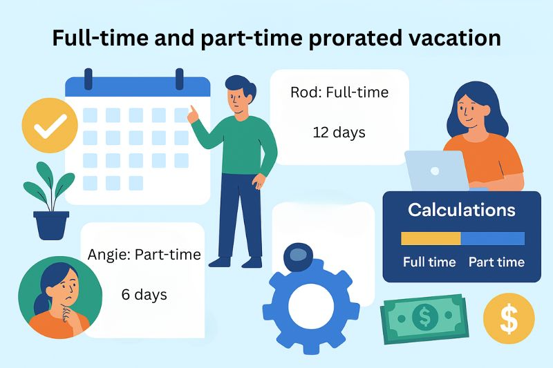 - Calculation: 24 ÷ 12 × 6 = 12 prorated vacation days
