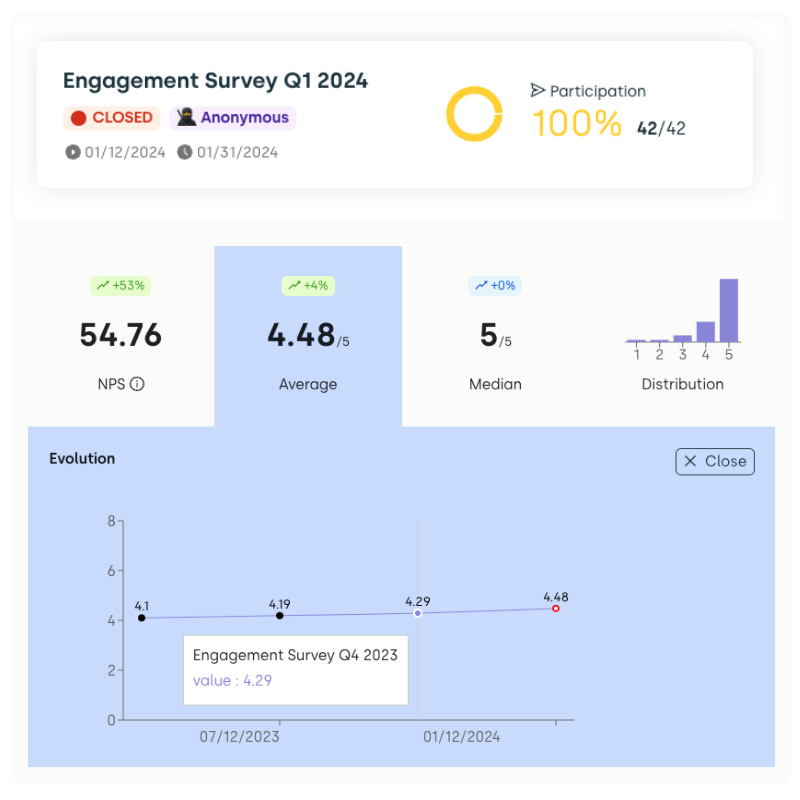 You'll be able to see the impact of your initiative, report numbers to management, and monitor how remote team members are feeling while also having direct, honest feedback from them.